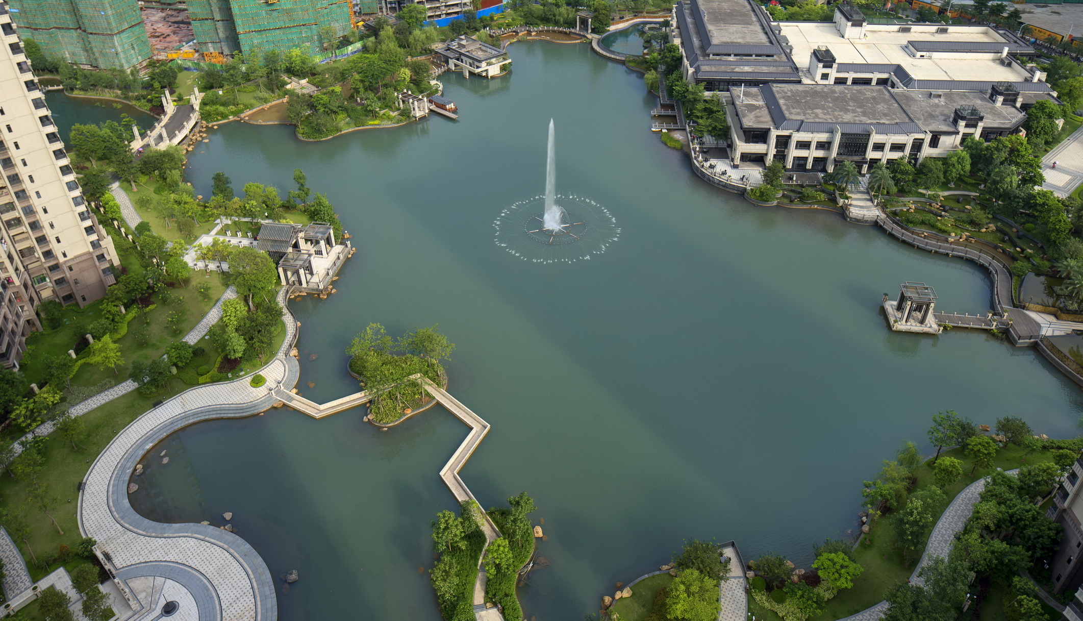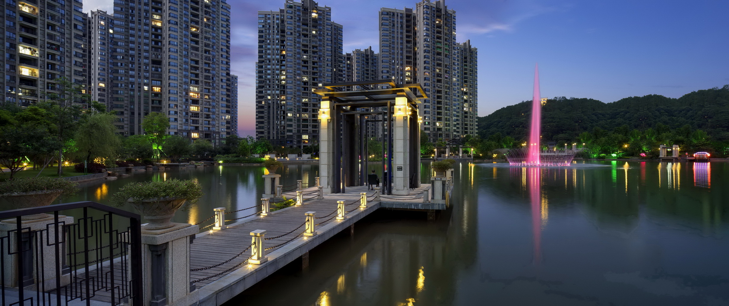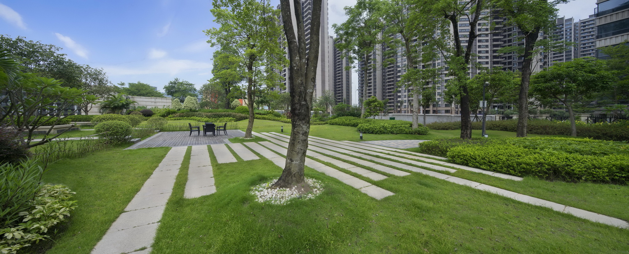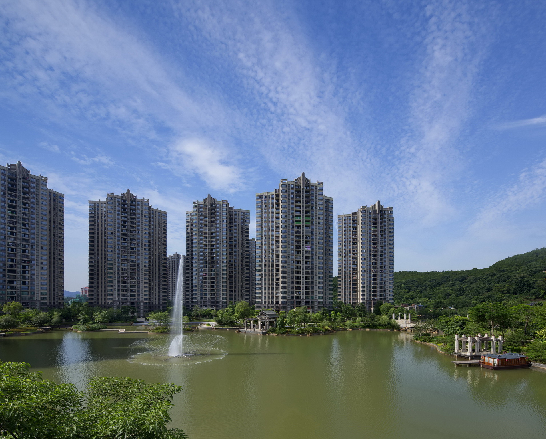 梅州富力城依山傍水,在中央形成生態(tài)湖,建筑依湖而建,擁有當(dāng)?shù)靥厣匀毁Y源。樹(shù)、河流、山田、泥土作為大自然的重要組成部分,是生命力的代表,城市中的人們生活在冰冷的水泥森林里,總會(huì)向往著綠色活力的度假居所,抽取大自然里的肌為這一切作基礎(chǔ)。樹(shù)林已經(jīng)是城市的稀缺資源,而本項(xiàng)目希望最大限度的利用土地資源,營(yíng)造出大片綠地河流的景觀(guān)效果,同時(shí)為了迎合當(dāng)代社會(huì)精英所追求的健康、環(huán)保、可持續(xù)等生活理念,為其提供尋找自然的居所。