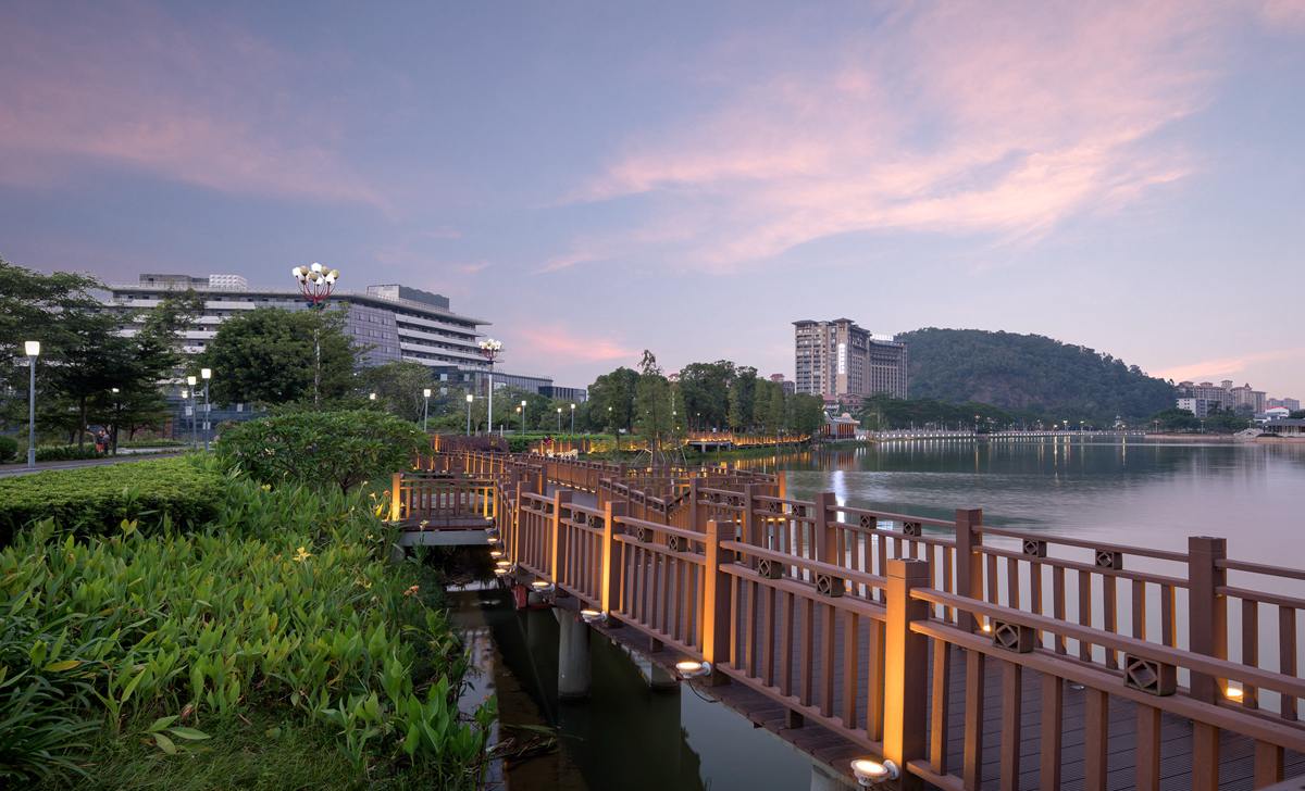 項(xiàng)目位于佛山市南海區(qū)西樵鎮(zhèn)聽音湖上下兩湖之間,基地位于聽音湖畔,北側(cè)與飛鴻水岸相連接,南側(cè)與錦石疊泉相毗鄰,后靠廣東“四大名山”之一的西樵山。在聽音湖片區(qū)中,普邦參與了“樵山文化中心”、“疊泉織錦”景觀、“樵山瀑影”景觀的建設(shè)。 樵山文化中心整體造型以現(xiàn)代手法整合嶺南多種傳統(tǒng)元素而成,一是建筑元素,如佛山祖廟的排樓、南海的祠堂、西樵的奎光樓等;二是民俗元素,如八角宮燈、樂安花燈等;三是西樵山觀音元素,如觀音蓮花座造型等。 疊泉織錦以動(dòng)靜相宜的水景為主要景觀形式,采用疊石、懸石、挑石等多種技術(shù)手段,營造了小橋流水、落英繽紛、泉水叮咚、波光粼粼等不同意境,同時(shí)“馨海碧云”和“水文千春”保留了場(chǎng)地內(nèi)原有大型樹木,對(duì)當(dāng)?shù)刈匀画h(huán)境和人文特色表現(xiàn)出了充分尊重。 “樵山瀑影”是廣東省目前最大型的瀑布主題景觀,落差大,長(zhǎng)度達(dá)120多米。形態(tài)上巨石參差錯(cuò)落,危巖陡峭,加之體量巨大,形成氣勢(shì)磅礴的感受。瀑布創(chuàng)造多樣的體驗(yàn),可遠(yuǎn)觀其勢(shì)、近觀其質(zhì)、入洞穴探其幽深?!皣W嘩”的水聲與水霧在皮膚上形成的冰涼觸感,給游客帶來沁人心脾的感受。 聽音湖片區(qū)塑造了佛山市三個(gè)典范:一是三舊改造的典范,將原先破舊的廠房和倉庫建設(shè)為一個(gè)高端的文化休閑公園;二是文化旅游產(chǎn)業(yè)的典范,‘山上觀音,山下聽音’交相輝映;三是生態(tài)環(huán)境建設(shè)的典范,水環(huán)境和綠化得到切實(shí)的提升。原廣東省委書記胡春華、佛山市委書記劉悅倫參觀項(xiàng)目并給予高度評(píng)價(jià)。目前該地區(qū)已成為文化旅游商貿(mào)區(qū),每到晚上吸引近萬人在該區(qū)域散步和娛樂,環(huán)境的改變也使西樵鎮(zhèn)的經(jīng)濟(jì)建設(shè)和生態(tài)文明建設(shè)得到均衡的發(fā)展。
