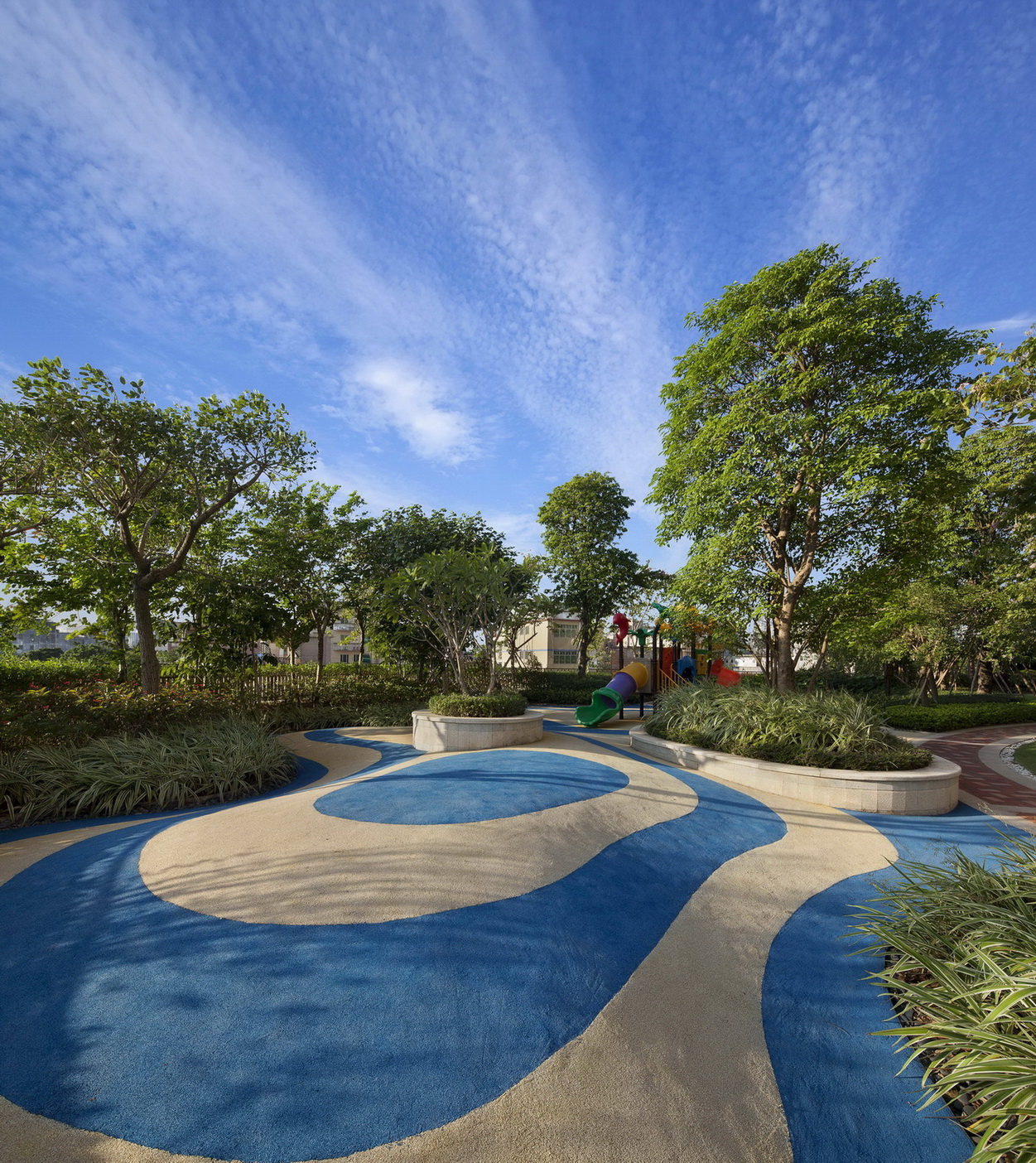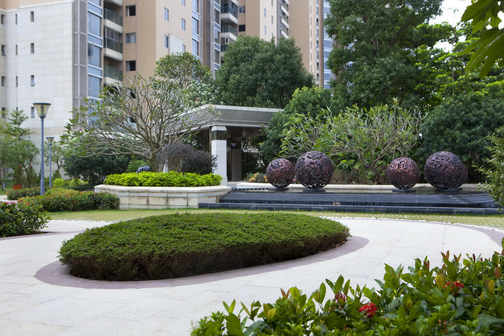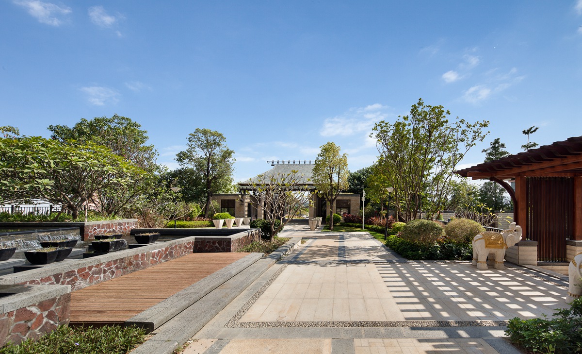 項目地塊臨近惠州江北CBD中心區(qū)域,東臨東江,坐擁1.5公里東江一線江景資源及市政規(guī)劃濱江公園。基于得天獨厚的景觀資源,力求打造一個新東南亞風(fēng)格海濱豪宅標(biāo)桿住宅,具備傳統(tǒng)與現(xiàn)代、東方與西方人居藝術(shù),獨蘊現(xiàn)代都市格調(diào)與經(jīng)典人文氣質(zhì),為居者帶來物質(zhì)與精神完美平後的居住感受,成為獨具海派風(fēng)范和惠州人文的新型豪宅典范。設(shè)計靈感來源于時尚仿生藝術(shù)的自然與藝術(shù)的結(jié)合,以石頭作為設(shè)計元素,通過系列的聚集、變形、拉伸等動作,演變成場地的形態(tài)。景觀設(shè)計均采用與主題風(fēng)格呼應(yīng)的東菌亞風(fēng)格,大到空間打造,小到細節(jié)裝飾,都體現(xiàn)了對自然的尊重,和對手工藝制作的崇尚。材料應(yīng)用體現(xiàn)在具備東南亞園林代表性的黃木、青石板、鵝卵石、麻石,色彩采用宗教特色濃郁的深棕色、褐色、金色等沉穩(wěn)大氣的神色系。在自然中找景,在景觀中建筑住宅。