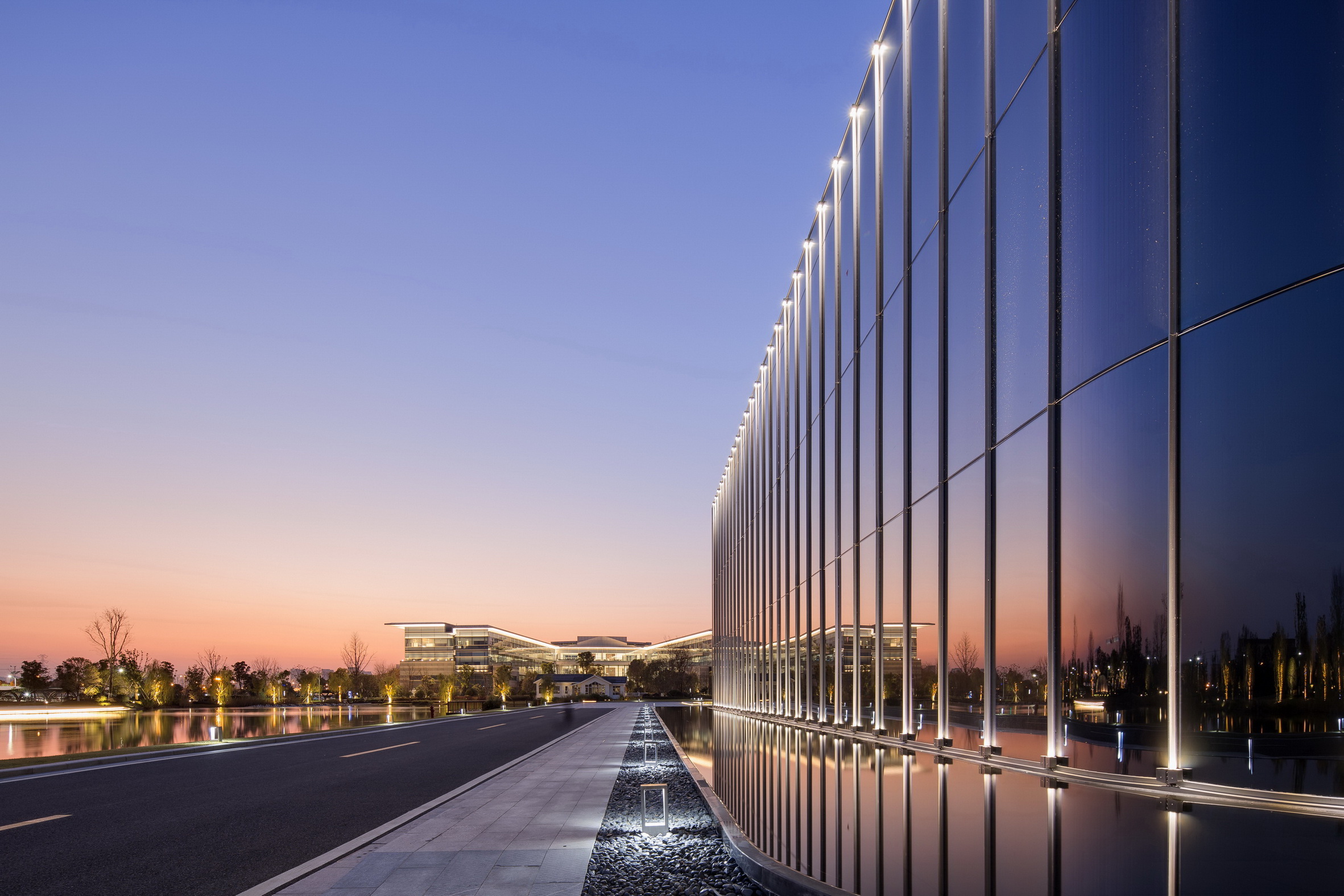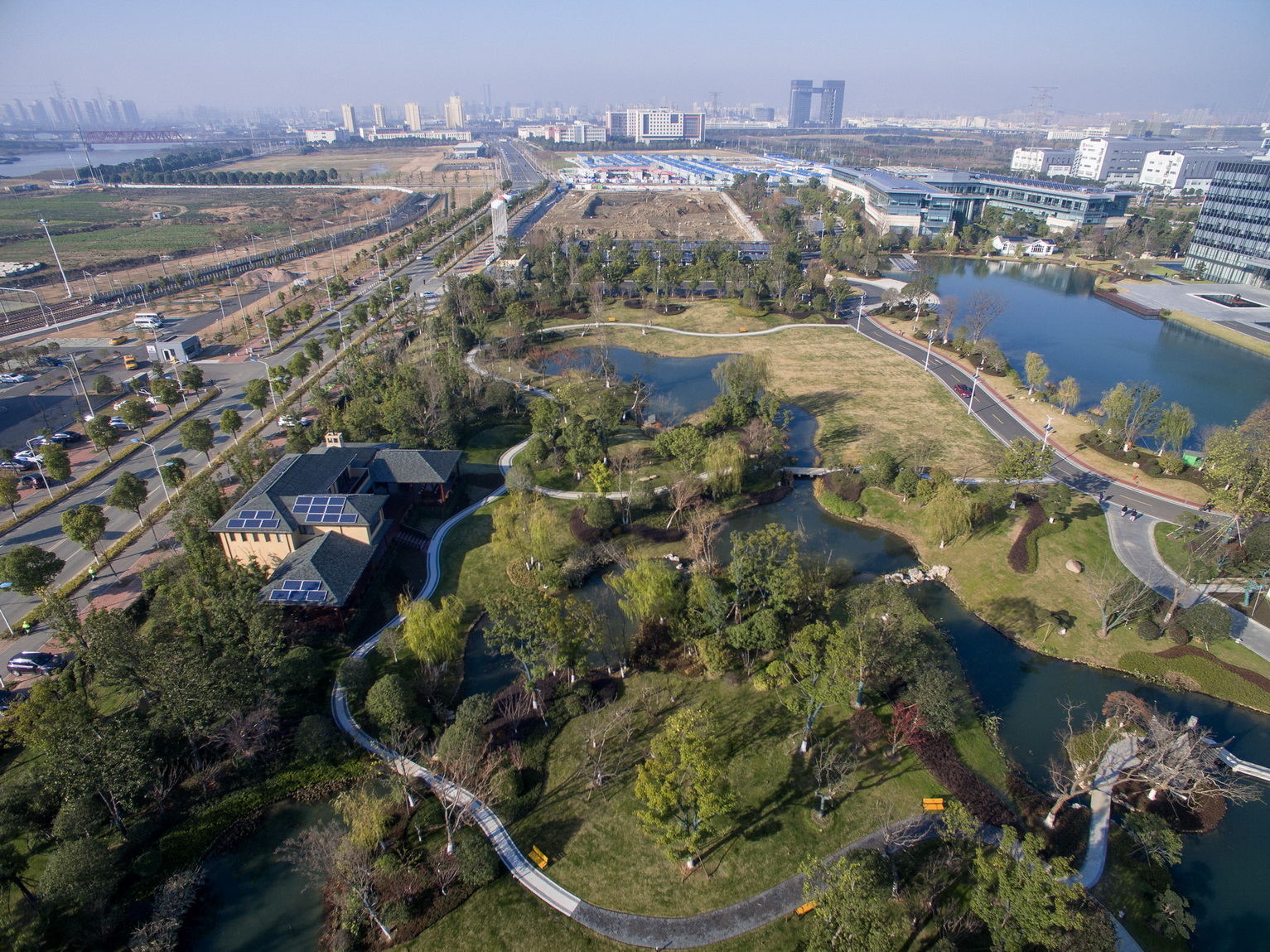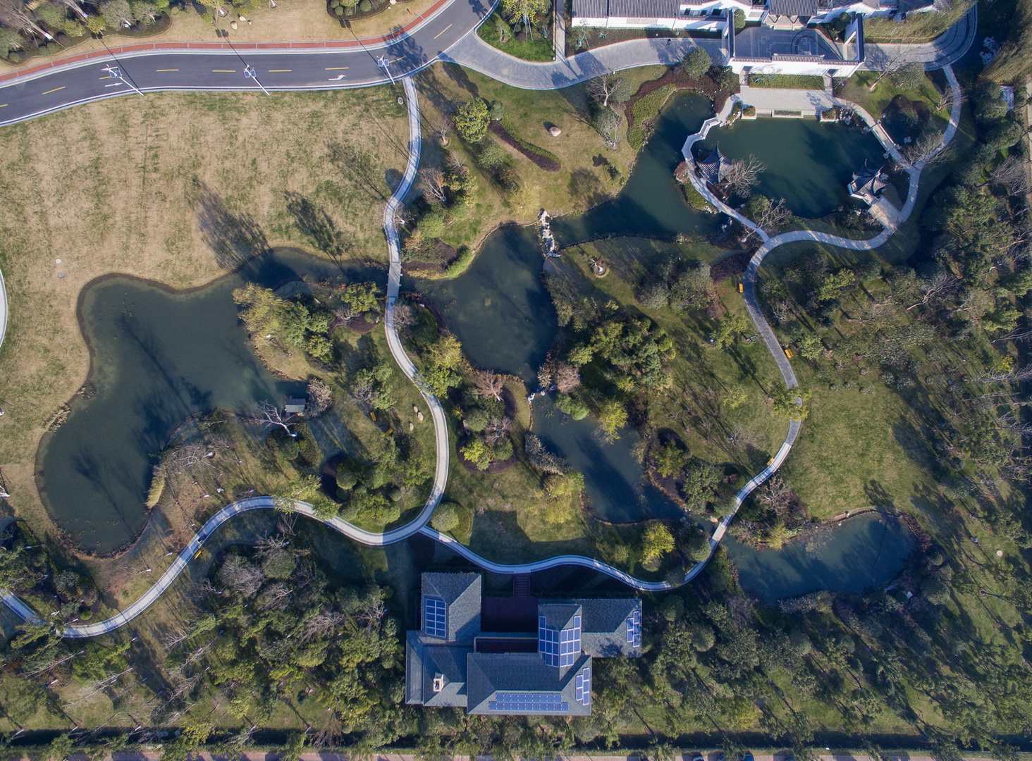 蘇州協(xié)鑫工業(yè)應(yīng)用研究院是協(xié)鑫集團(tuán)總部所在地,其主要滿足協(xié)鑫集團(tuán)及關(guān)聯(lián)企業(yè)在光伏、電力等領(lǐng)域的科研需求。項(xiàng)目采用了自然式園林景觀風(fēng)格,整體大氣簡潔,地形起伏自然,層次分明;庭院結(jié)合自然水系,曲線流暢植物配置因形就勢,疏密有致。此外,由于項(xiàng)目地表水位高,植物生長易積水,普邦股份為此硏發(fā)設(shè)計(jì)岀可持續(xù)、美觀、低成本造價的樹木根部低成本自動排水系統(tǒng)構(gòu)造,該項(xiàng)成果也已獲得國家實(shí)用新型專利。