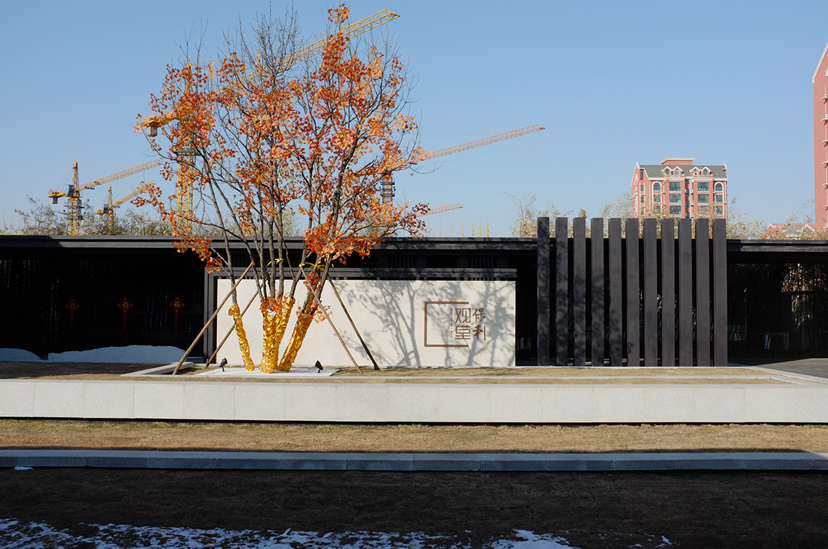 保利觀堂位于青島城陽(yáng)區(qū),屬于城陽(yáng)區(qū)中心板塊。項(xiàng)目采用集裝箱裝配式建筑作為售樓部空間。展示區(qū)主打新住宅體驗(yàn)的一種“輕”度假式的現(xiàn)代景觀,于閑庭之中,肆意談笑風(fēng)生,于喧囂之末,靜觀繁華舞落。項(xiàng)目從傳統(tǒng)園林空間中汲取能量,利用空間的滲透與豐富的層次加強(qiáng)景物的深遠(yuǎn)感,通過(guò)巧妙的布局營(yíng)造出空間層次豐富、精致明朗的園林空間——“堂前筑院,大隱繁華;咫尺山水,方寸乾坤?!?/p>