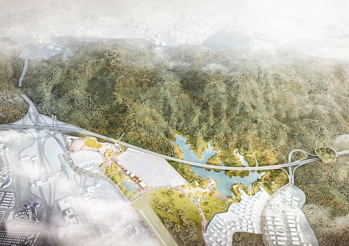 項目位于深圳龍華區(qū),福田區(qū)和南山區(qū)三區(qū)交界處,東起梅觀路,東南臨福田區(qū)梅林街道,西與塘朗山郊野公園相接,北抵新區(qū)大道,金龍路。大腦殼山是深圳城市南北軸線的中心,亦是深圳梅林山脈最后一片未被人為開發(fā)的自然郊野區(qū)域,因其獨特的自然風(fēng)貌和絕佳的觀景點,受到許多驢友的喜愛。山上的奇石景觀與豐富的植被資源是場地的特色,山腳的牛咀水庫風(fēng)光迤邐,濕地周圍長滿濕地植物,樹木郁郁蔥蔥,常年清涼宜人。方案分為三大功能區(qū),分別為:郊野公園、濱水公園、文化體育公園。項目對標(biāo)香港太平山,旨在打造深圳觀景第一峰、郊野探險第一徑、城市休閑新名片。