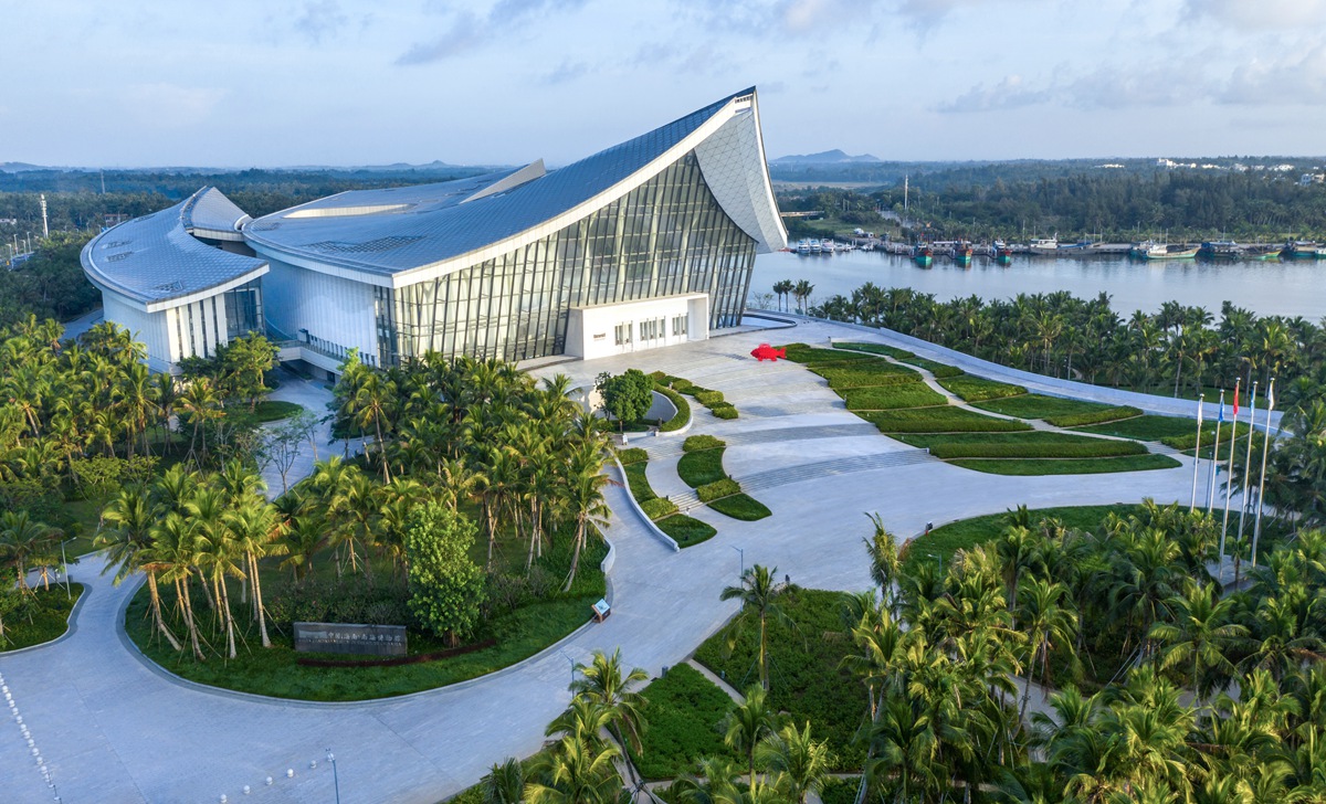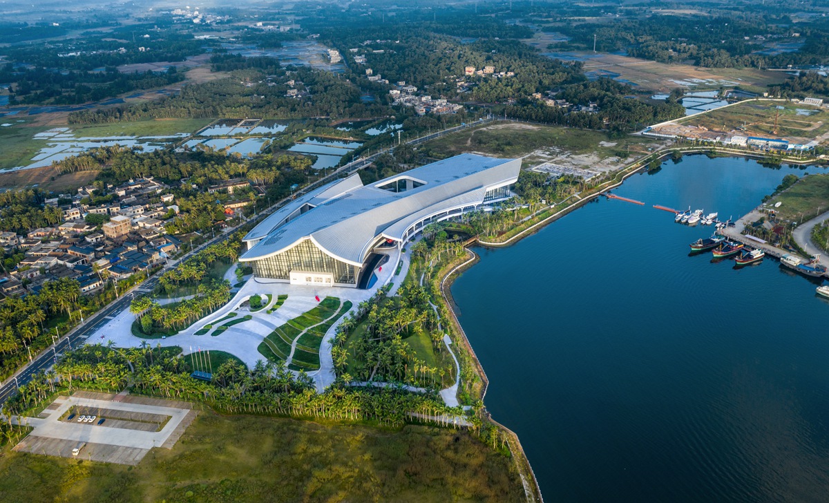 國(guó)家南海博物館選址在瓊海市潭門中心漁港,地塊歷史悠久,水陸交通便利,距離博鰲約9公里,屬于大博鰲經(jīng)濟(jì)圈的范疇。南海博物館的建筑概念設(shè)計(jì)方案由中國(guó)工程院院士、華南理工大學(xué)建筑設(shè)計(jì)研究院院長(zhǎng)何鏡堂領(lǐng)銜擔(dān)綱設(shè)計(jì),融合現(xiàn)代美學(xué)風(fēng)格和中國(guó)文化元素,以“絲路逐浪、南海方舟”為設(shè)計(jì)主題,結(jié)合了海南黎族船型屋、漁網(wǎng)、海浪等地方文化和海洋文化元素。南海博物館的景觀設(shè)計(jì)依附于建筑風(fēng)格,運(yùn)用海洋元素,融入本土海洋漁耕文化,采用大弧線組織與串聯(lián)場(chǎng)地內(nèi)各個(gè)區(qū)域:椰林廣場(chǎng)、東側(cè)濱海區(qū)域、紅樹林河道區(qū)域、北廣場(chǎng)及西側(cè)景觀帶,并在設(shè)計(jì)過程中,著重于對(duì)場(chǎng)地原有植物的保護(hù)、對(duì)紅樹林原生態(tài)的恢復(fù),同時(shí)注重人工與自然的結(jié)合,營(yíng)造出本土文化風(fēng)情十足的景觀空間。