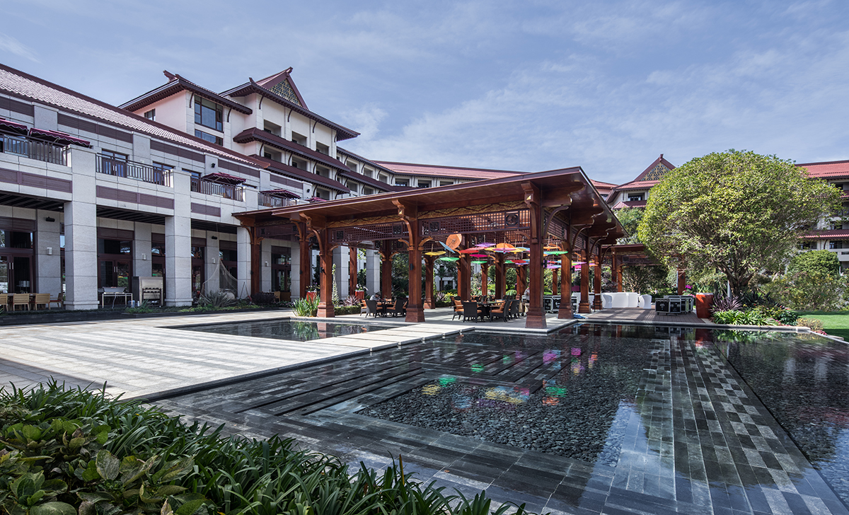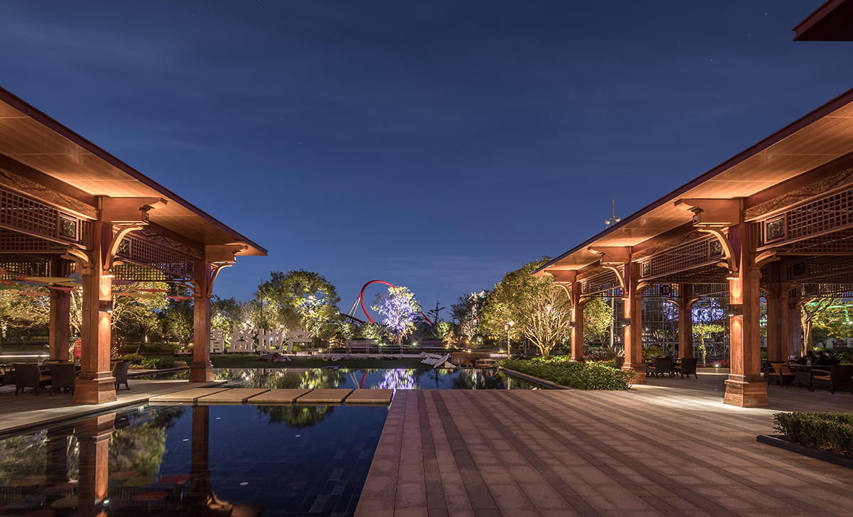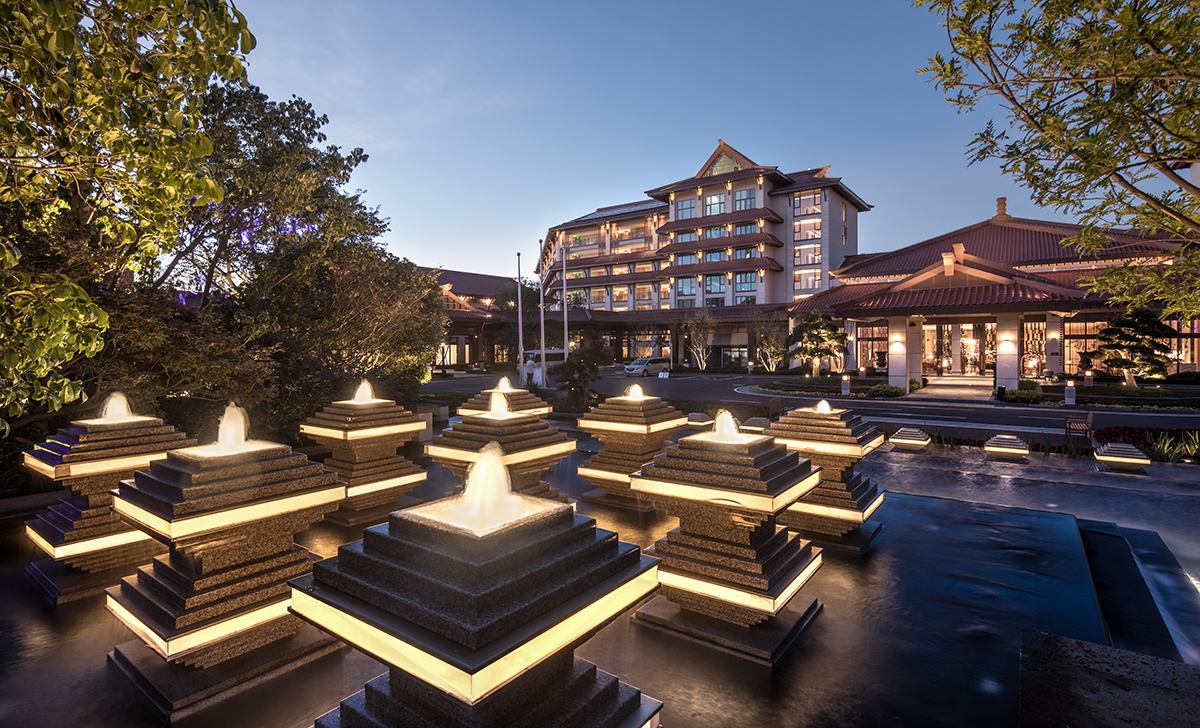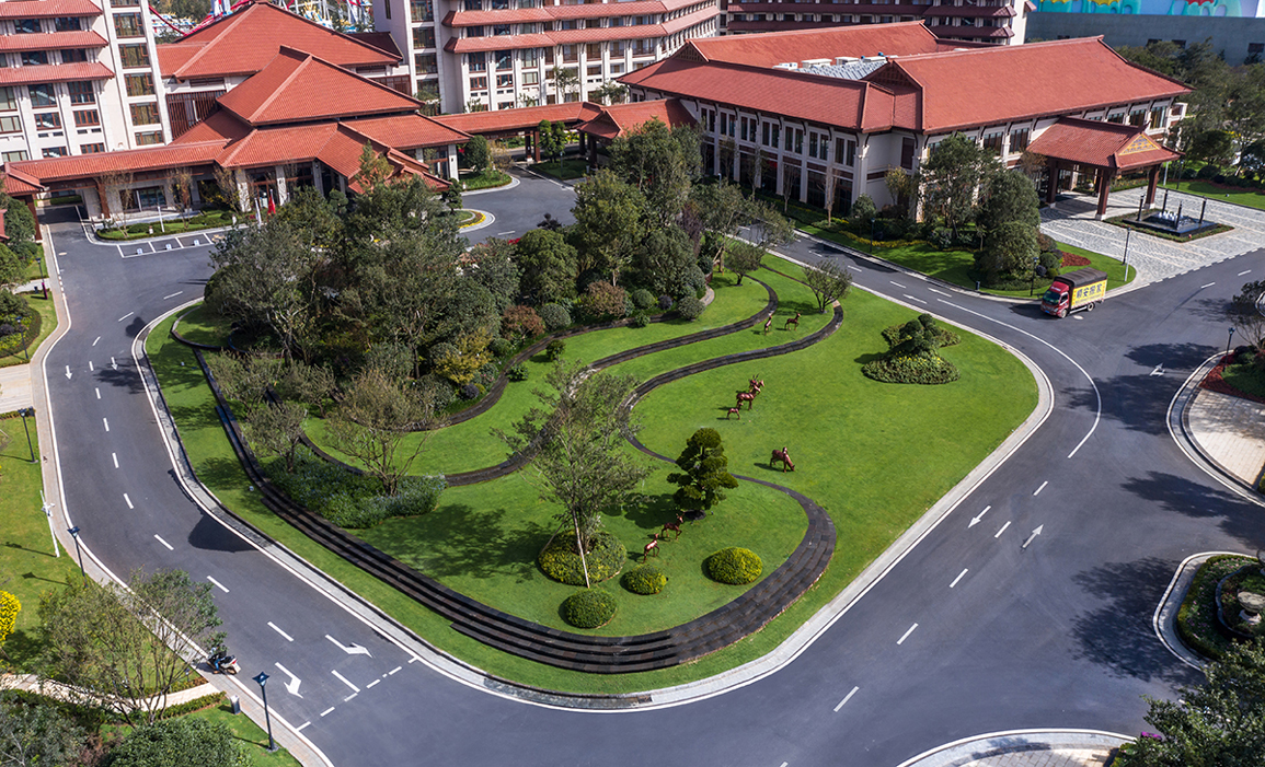 七彩云南濕地度假酒店集禮儀、慶典、餐飲、休閑于一體,普邦設計致力于為其打造一個充滿古滇文化特色的高端度假環(huán)境。酒店門樓、燈柱及文化景墻上,采用了古滇青銅文物為主的設計元素;露天餐廳被熱帶風情的綠植所圍繞,營造出一個私密優(yōu)雅的用餐環(huán)境;多功能草坪利用大面積空間和地形,華美大氣,視線開闊,充滿儀式感。