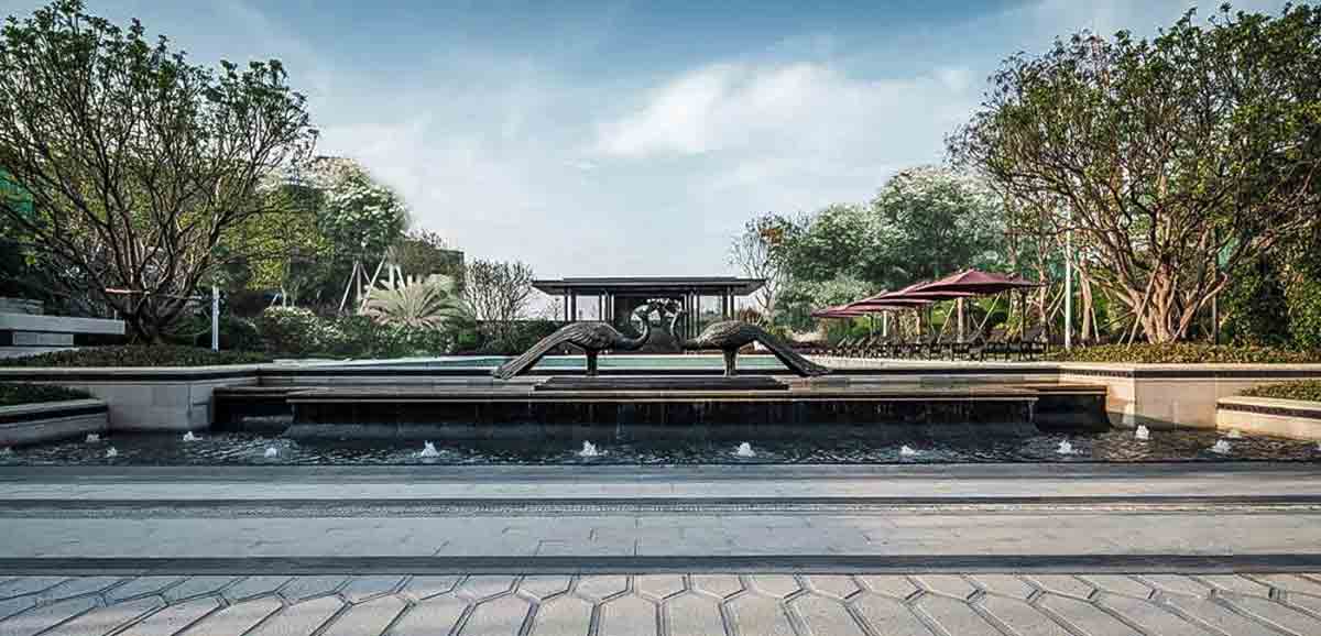 聯(lián)發(fā)·海峽一號位于廈門第四道海灣安海灣畔,周邊比鄰世上最長的梁式石橋“五里橋”歷史古跡,文化悠久,具有深厚的人文底蘊。項目溯源安海灣海濱文化,結(jié)合中式院落精神,采用與建筑風格相契合的新亞洲風格,借鑒古典私家園林的造園藝術(shù)手法,以叢林夾道、迂回游廊及枯山水的形式延續(xù)曲徑通幽、移步換景的空間氛圍,并將象征家庭美滿富貴的孔雀和牡丹元素融入設(shè)計,力圖構(gòu)建與海灣風情文化與傳統(tǒng)文化相統(tǒng)一的居住格局。