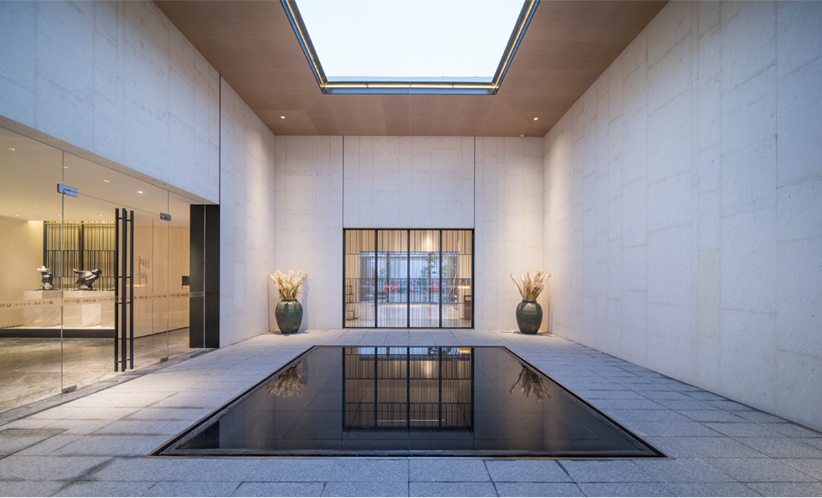 保利玥府位于江門新會(huì)古井,古井與崖山是著名的崖山海戰(zhàn)發(fā)生地,此戰(zhàn)之后,南宋宣告覆滅,保利玥府設(shè)計(jì)選擇讓景觀“消隱”,以極簡的手法來烘托建筑讓建筑與景完美交融。