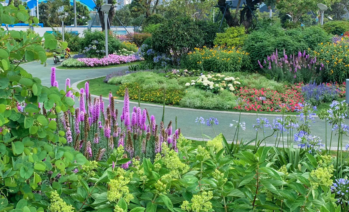 前海紫荊園以紫荊花為主題,整個(gè)園區(qū)占地約2萬5千平方米,共有6個(gè)品種的紫荊,其中“紅花羊蹄甲”、“宮粉紫荊”、“云南羊蹄甲”以及“嘉氏羊蹄甲”展示著不同地域紫荊文化的特色。香港區(qū)花紅花紫荊與素有南國櫻花之稱的宮粉紫荊為紫荊園主打的花,寓意著中國與香港緊密相連。而出生于艱難困苦環(huán)境的云南羊蹄甲則展示了其不畏艱苦,勇于拼搏的高貴品質(zhì),貼切地展示了深圳的城市精神。紫荊花每年有近6個(gè)月的花期,各色紫荊在園中爭相開放,營造出五彩繽紛、紫荊爭艷的效果。紫荊園還擁有2200平方米的花境,不同品種的花組合設(shè)計(jì)在一起,利用色彩、高低、形狀的差異營造出了一個(gè)唯美夢幻的花園意境。