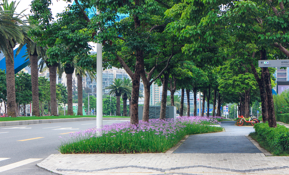 作為前海重要門戶的前海大道(原“前灣一路”),如今花紅柳綠,灌木成排。該項(xiàng)目最大的亮點(diǎn)無(wú)疑是迎賓大道107株全冠幅移栽的大規(guī)格加拿利海棗100%成活。加拿利海棗雖造型漂亮,但其造價(jià)高、養(yǎng)護(hù)難、成活率低??紤]到加拿利海棗成活的兩大關(guān)鍵因素——病蟲害及積水,項(xiàng)目組不斷想辦法從源頭解決問(wèn)題:為防止病蟲害,特別是鉆心蟲的入侵,在生長(zhǎng)點(diǎn)和根部都采用防御性殺蟲劑。為保持土壤良好的排水透氣性,考慮到前海是鹽堿地,又特地從順德拉塘泥作為種植土進(jìn)行回填,保證根部的成長(zhǎng)與吸收。正是憑借我司多年的專業(yè)技術(shù)積累,從選苗、挖穴、下肥、種植、支撐到防病蟲害,建立出一整套完備的加拿利海棗種植和養(yǎng)護(hù)技術(shù)體系,形成企業(yè)工法并申請(qǐng)專利,有效保障了加拿利海棗的成活率。如今,前海所有加拿利海棗已種植近三年,100%生根發(fā)芽,長(zhǎng)勢(shì)良好。經(jīng)歷過(guò)臺(tái)風(fēng)“飛鴿”、“山竹”的雙重考驗(yàn),107株加拿利海棗依然巍然矗立在深圳前海之濱,成為前海地區(qū)的最具特色的城市名片。