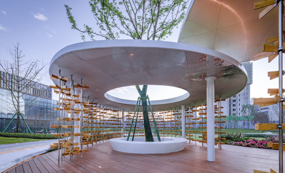 保利時(shí)代首開區(qū)以一顆發(fā)芽的、向上生長的種子為序幕,演繹富有生命情感的三大空間進(jìn)程,打造出根系廣場、種子客廳以及漂浮水景三大景觀。