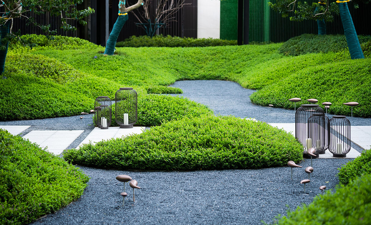 景觀主張自然味、設(shè)計(jì)品和歸屬感。 汲取了松山湖里經(jīng)典景點(diǎn)的五個(gè)意境,打造一徑五景。 結(jié)合景觀設(shè)計(jì)一個(gè)最優(yōu)的展示路徑串聯(lián)起來形成風(fēng)景畫卷, 營造景賦的味道,讓客戶感受歸家、具備精神歸屬性的自然風(fēng)景。