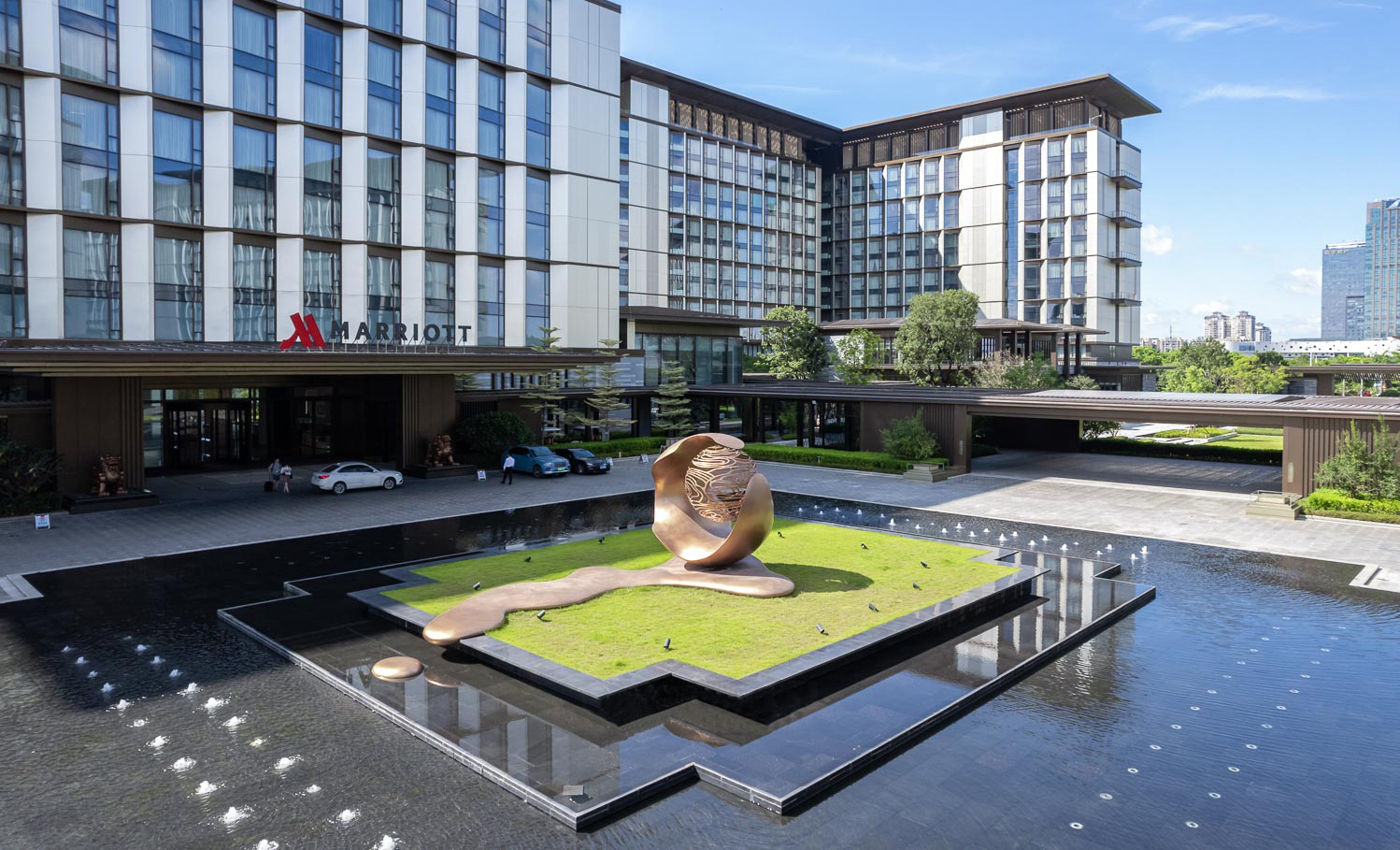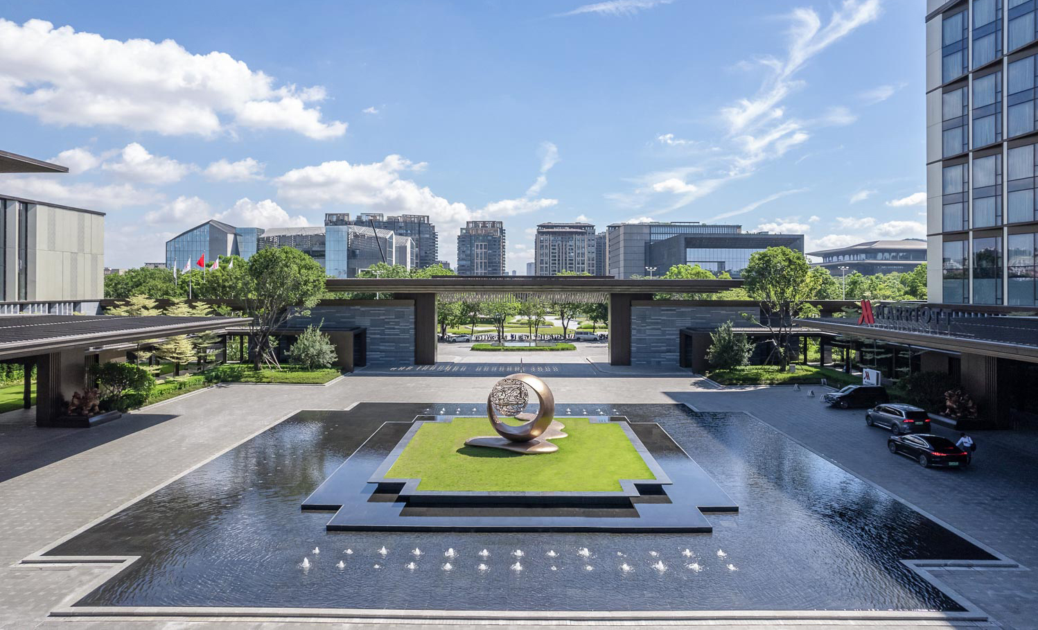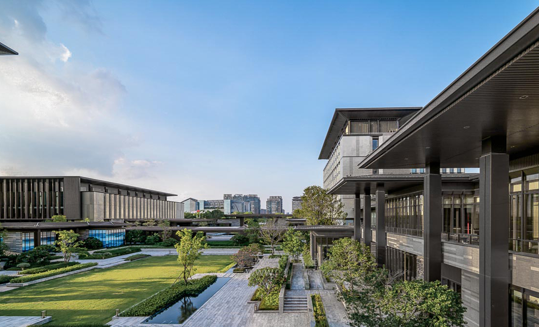 云珠酒店與白云山風(fēng)景區(qū)相鄰,擁有優(yōu)質(zhì)山林景觀資源。酒店主要服務(wù)于企業(yè)與政府客戶,滿足合作洽談、產(chǎn)業(yè)導(dǎo)入、政企研討、展貿(mào)培訓(xùn)等功能需求。整體景觀設(shè)計以尊貴、大氣、穩(wěn)重效果為主,在凸顯功能性與地域文化性的同時,也注重氛圍營造、儀式感與輕快感兼具,充分體現(xiàn)國際性與服務(wù)性。